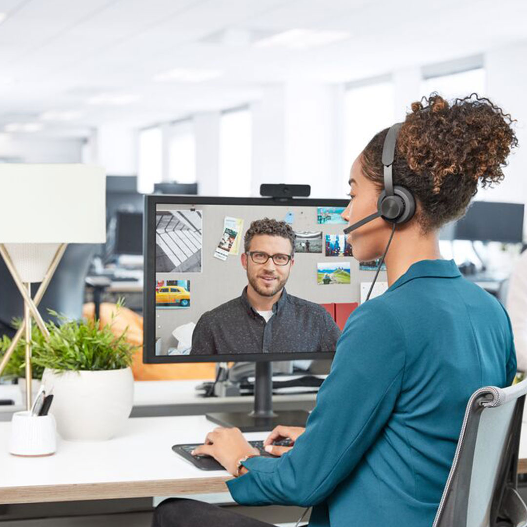 A DISTANCIA Comuníquese a distancia con cualquier persona manteniendo charlar seguras y profesionales. Puede complementar su plataforma UC con tecnología de calidad para una mejor comunicación. |